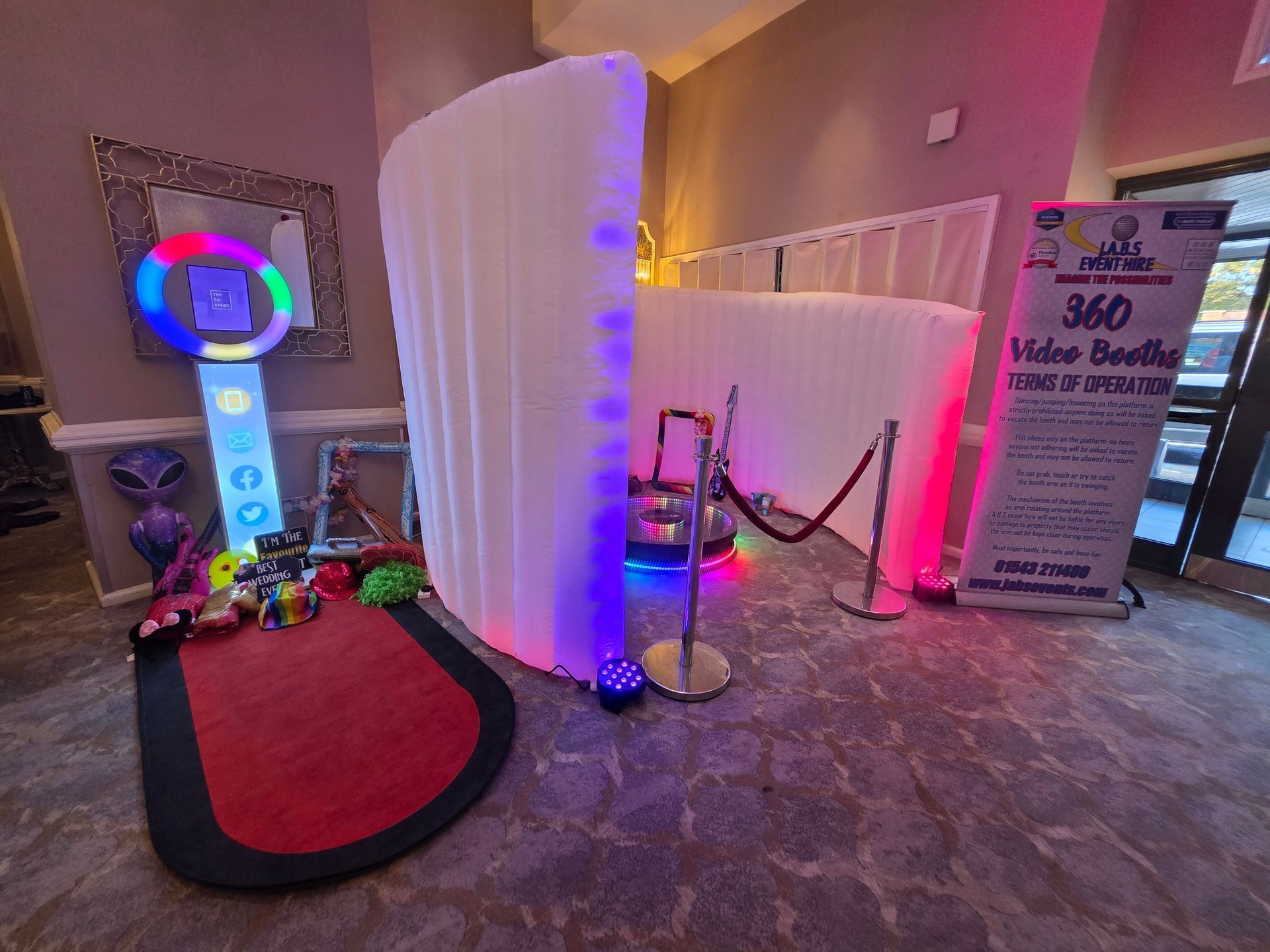 Our 360 photo booth with props and fully staffed.